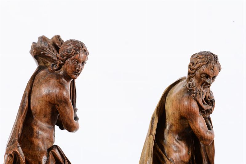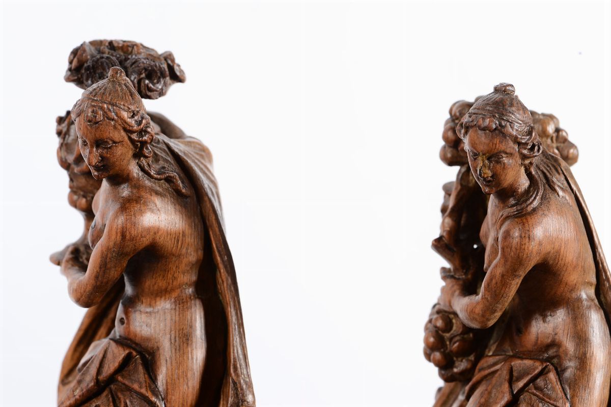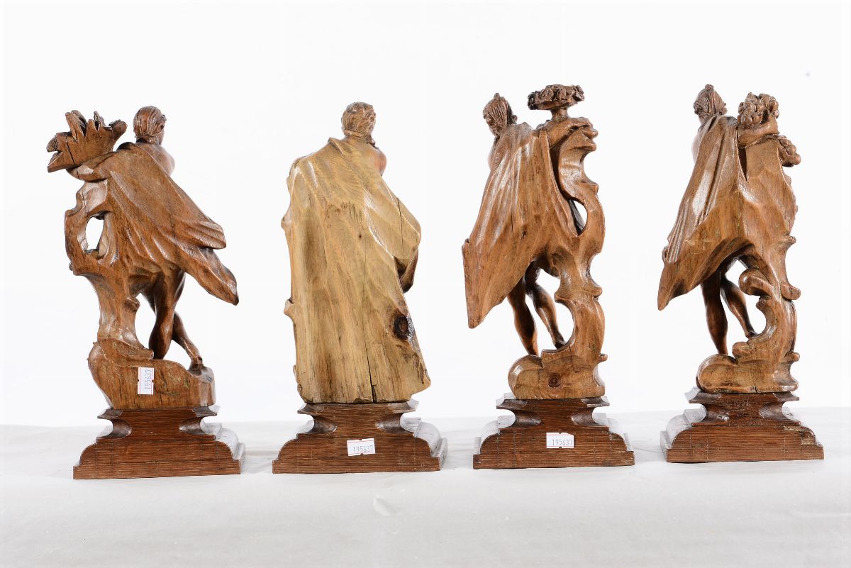 Le quattro stagioni. Legno di cirmolo. Intagliatore barocco veneto del XVIII secolo