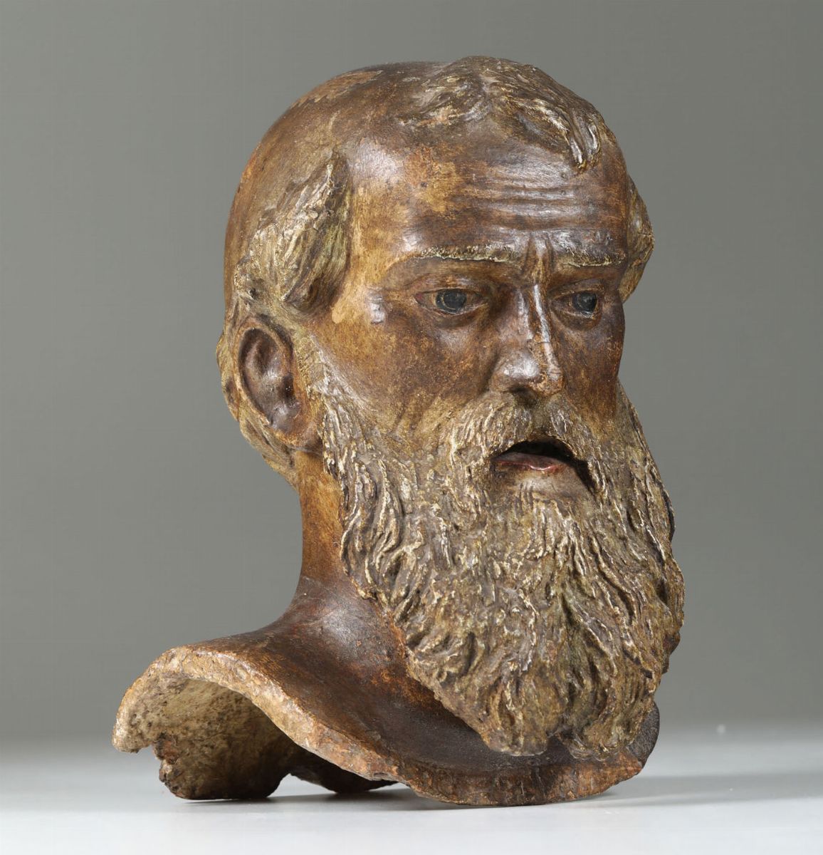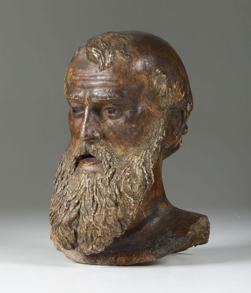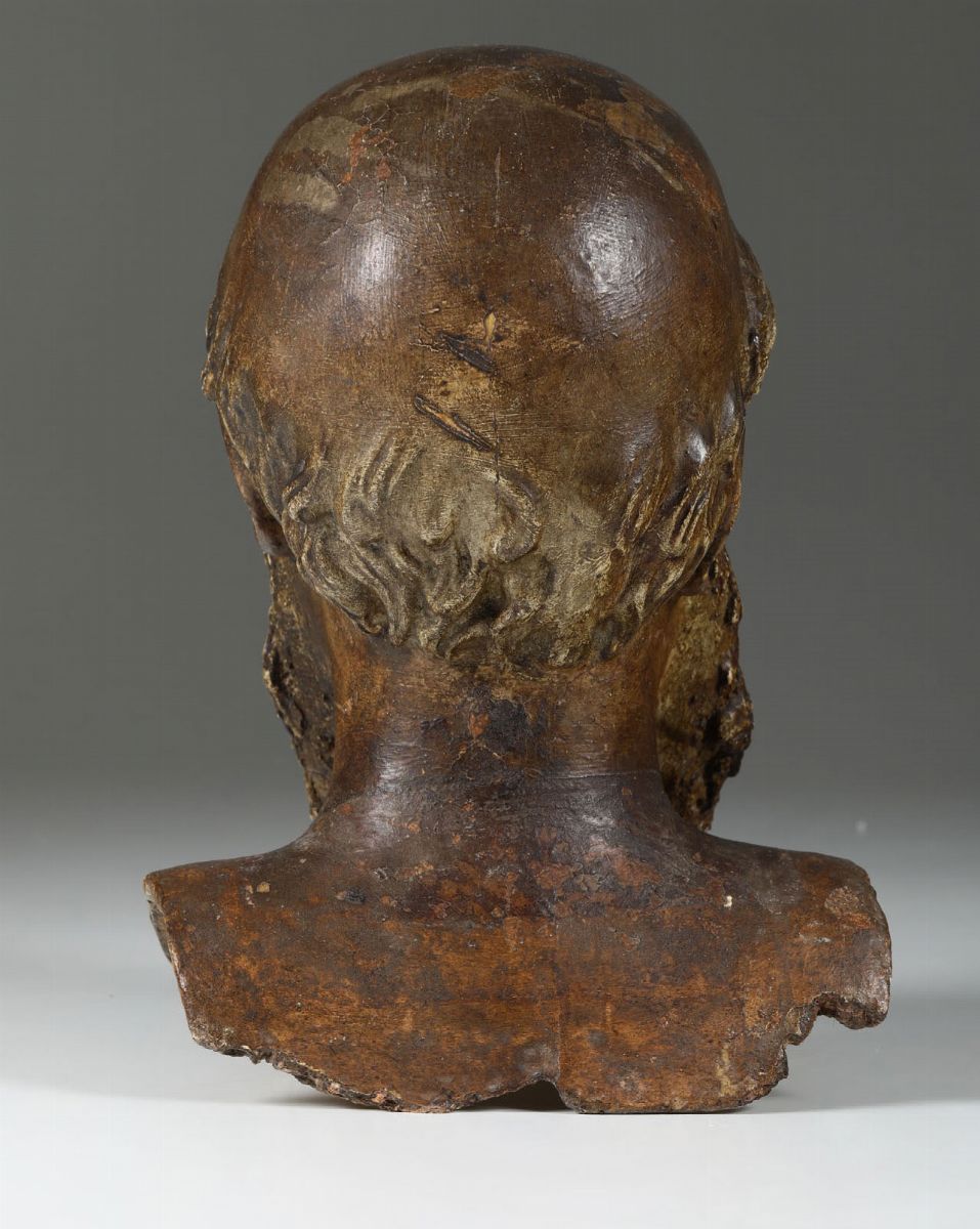 Testa virile in cartapesta dipinta. Arte dell'Italia centro-meridionale del XVII-XVIII secolo