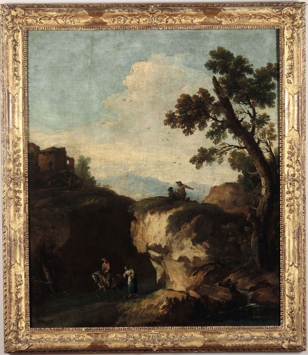 Giuseppe Zais (Forno di Canale 1709 - Treviso 1784) Paesaggio con rovine e viandanti
