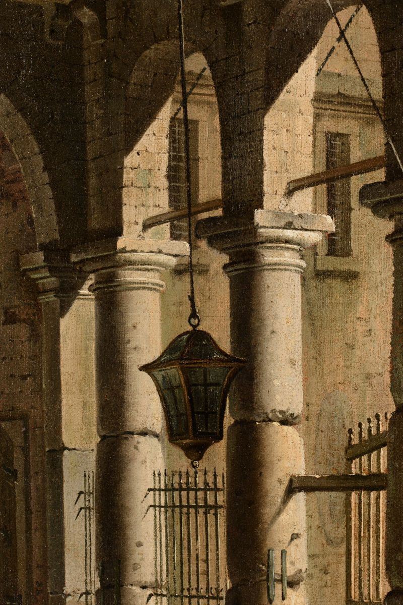 Scuola bolognese del XVIII secolo Scorcio architettonico con porticato