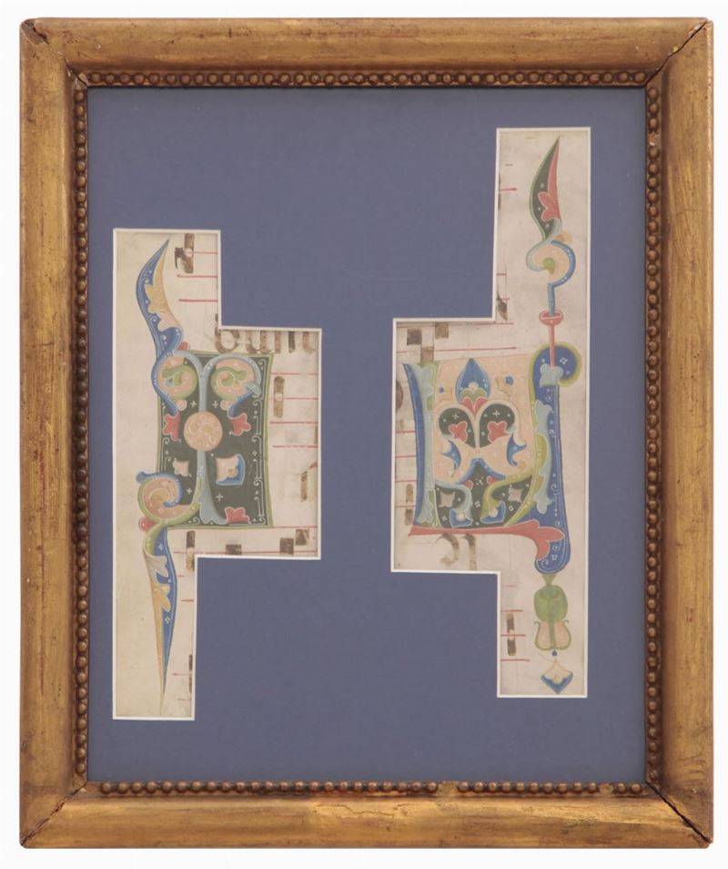 miniature su pergamena, mm 210x85; mm 240x80; mm 125x10,5; mm 85x9