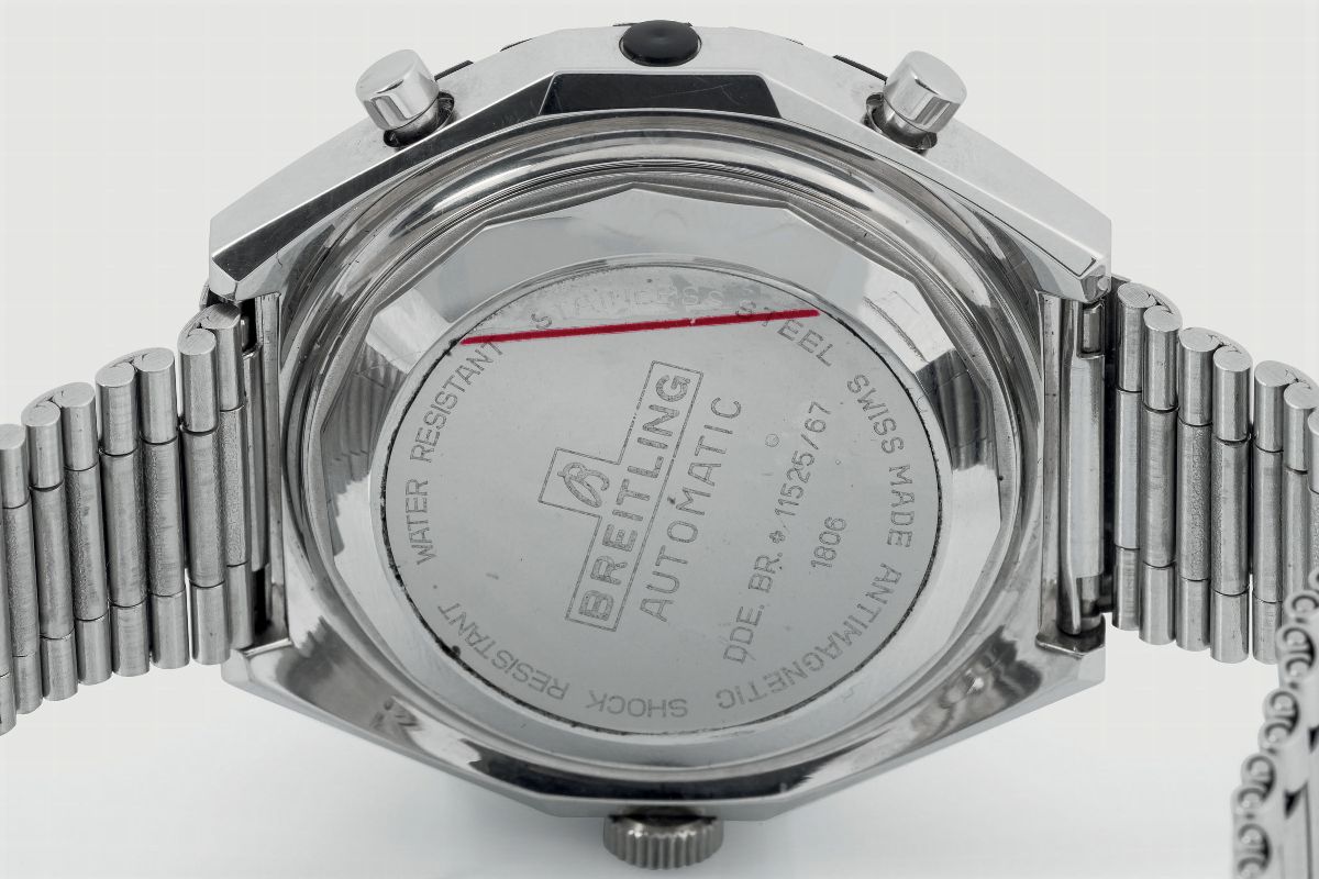 Breitling, Genève, Navitimer, Chrono-Matic, Ref. 1806. Raro, orologio da polso, oversize, cronografo in acciaio, automatico, impermeabile, con datario e bracciale originale con chiusura deployante. Accompagnato dalla scatola originale. Realizzato nel 1970 circa