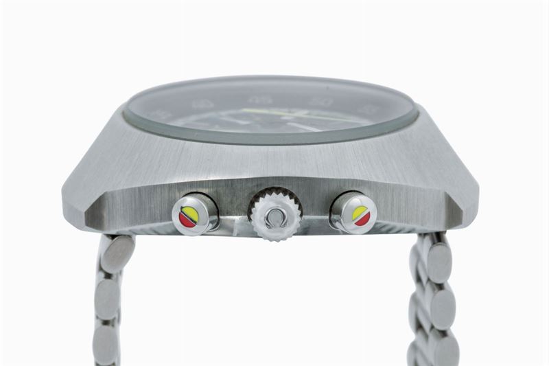 OMEGA, Flightmaster, Ref. ST 145.026. Orologio da polso, in acciaio, cronografo, impermeabile con bracciale originale e chiusura deployante. Realizzato nel 1970 circa
