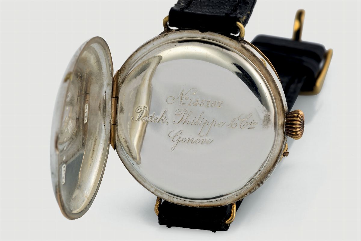 PATEK PHILIPPE, Genéve, movimento No. 145107. Raro, orologio da polso, in argento e oro. Realizzato nel 1910 circa