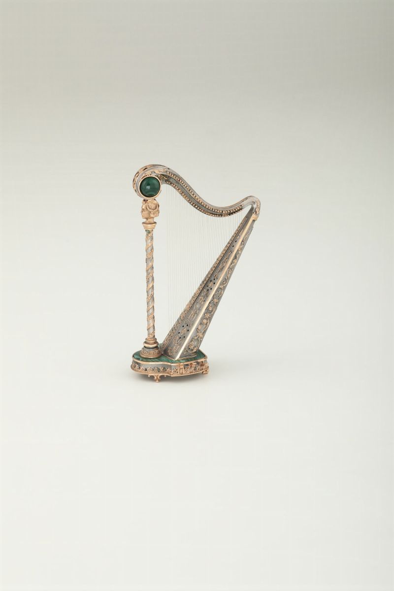 Arpa in argento parzialmente dorato e malachite. Argenteria artistica milanese del XX secolo