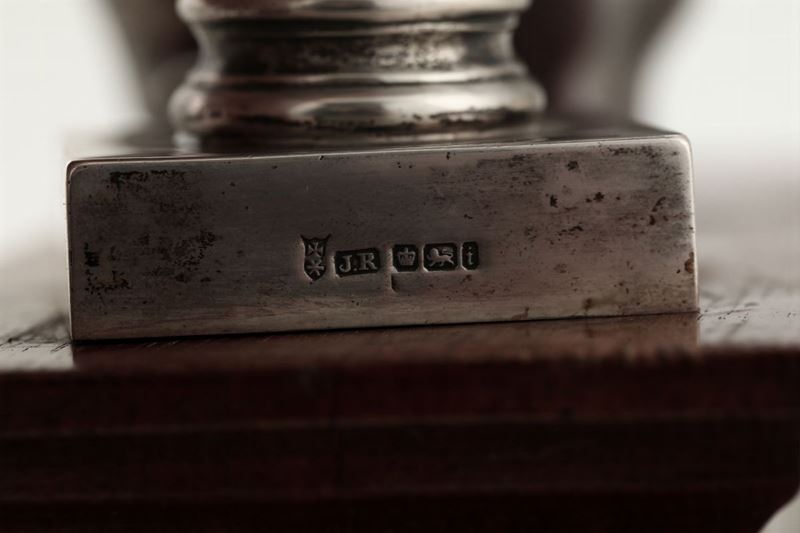 Composizione in argento fuso e cesellato composta da coppa con bolli della città di Sheffield 1901 e dell'argentiere J.R(non [..]