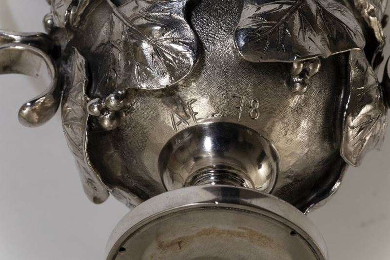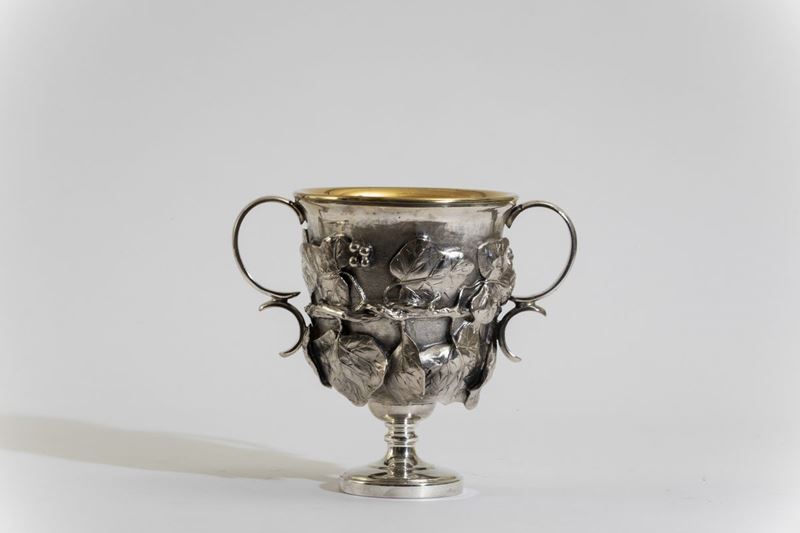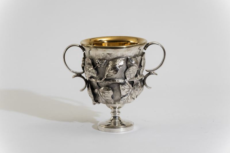 Coppa in argento 925 parzialmente dorato, fuso e cesellato, Buccellati, Italia XX secolo