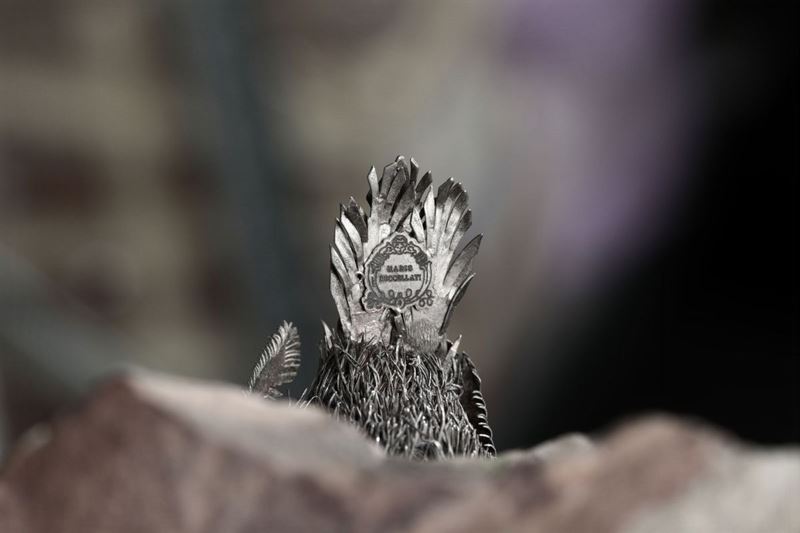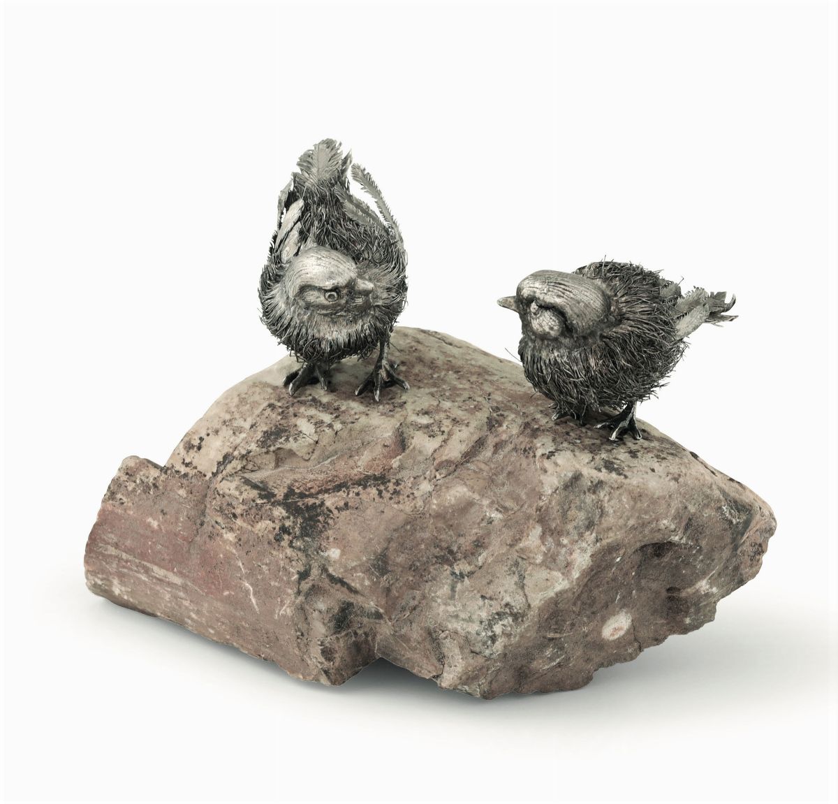 Coppia di passerotti in argento su supporto minerale. Mario Buccellati Milano XX secolo