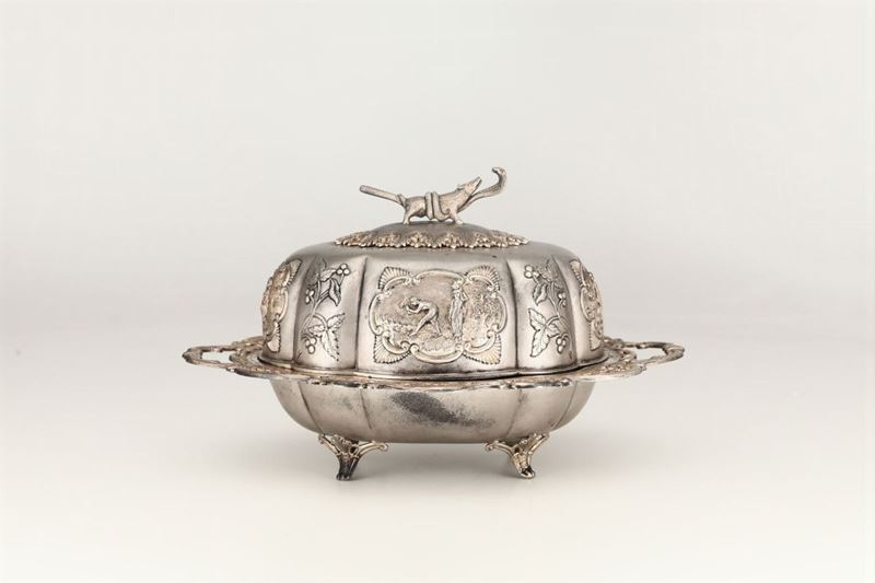 Legumeria in argento fuso, sbalzato e cesellato. Manifattura orientale del XX secolo. Probabilmente India