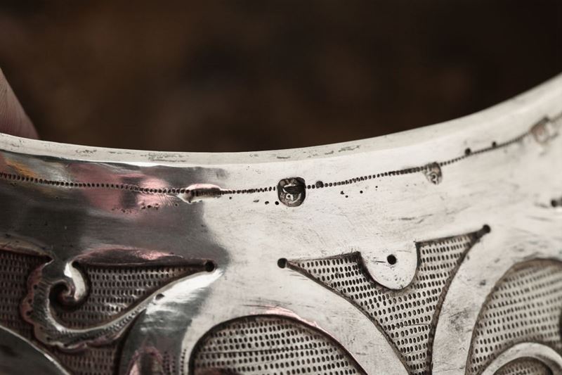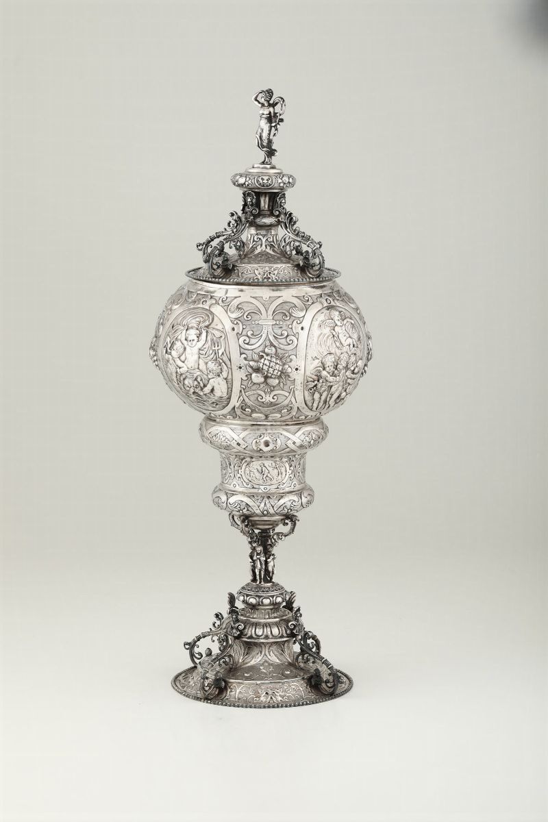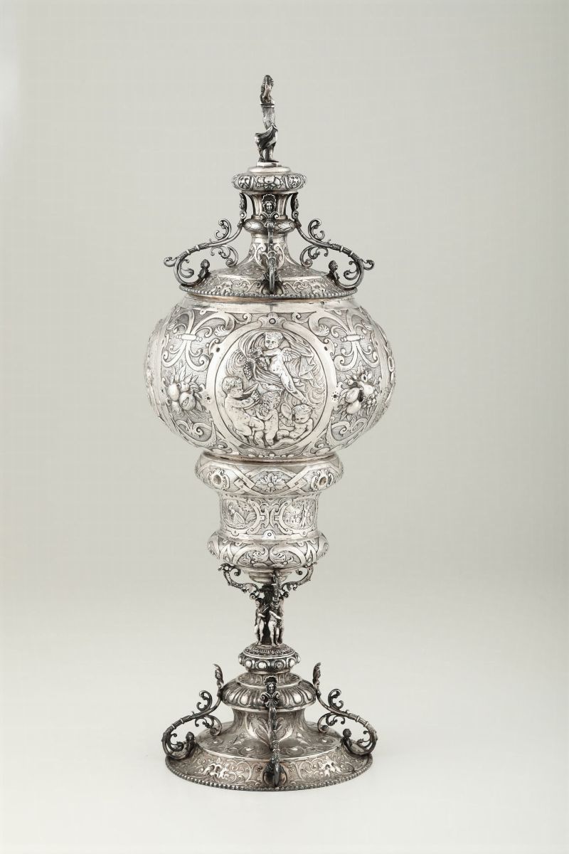 Monumentale coppa in argento fuso, sbalzato e cesellato, probabilmente Germania del XIX-XX secolo