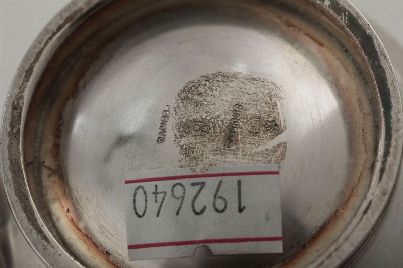 Servito composto da teiera, caffettiera e zuccheriera in argento fuso, cesellato e parzialmente dorato. Argenteria Italiana [..]