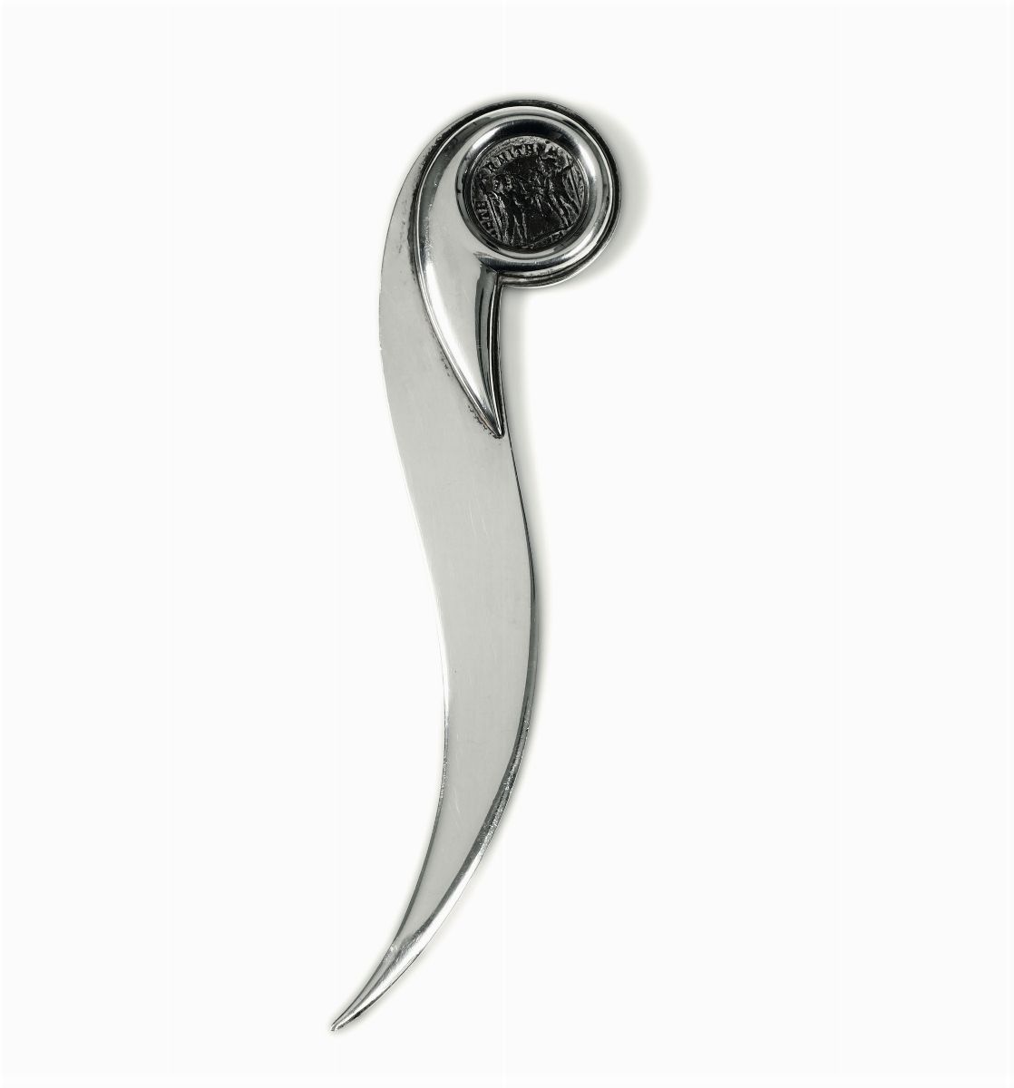 Tagliacarte in argento con moneta antica in bronzo, Roma terzo quarto del XX secolo orafo Ubaldo Vitali per Bulgari, XX [..]