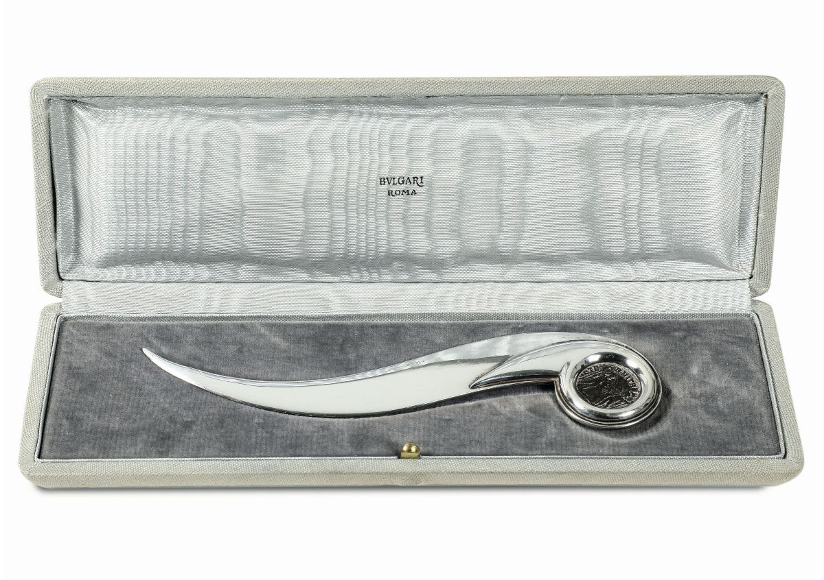 Forma a lama di scimitarra entro astuccio firmato Bulgari