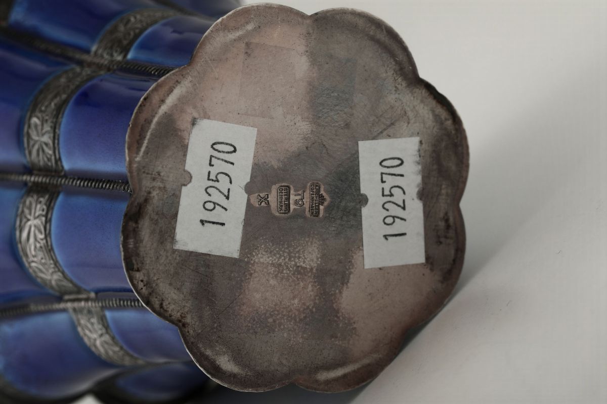 Vaso in argento e smalto blu, XX secolo