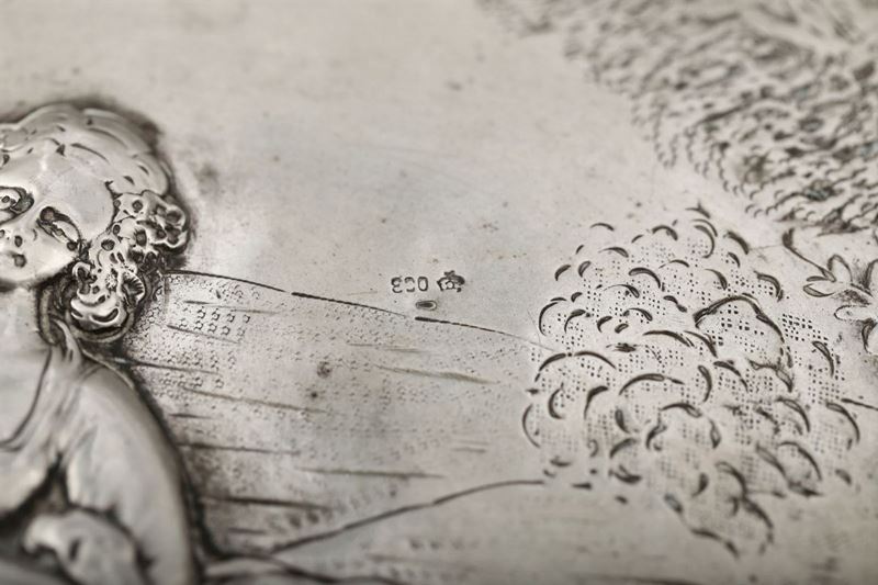 Vassoio in argento traforato e cesellato, manifattura artistica del XX secolo