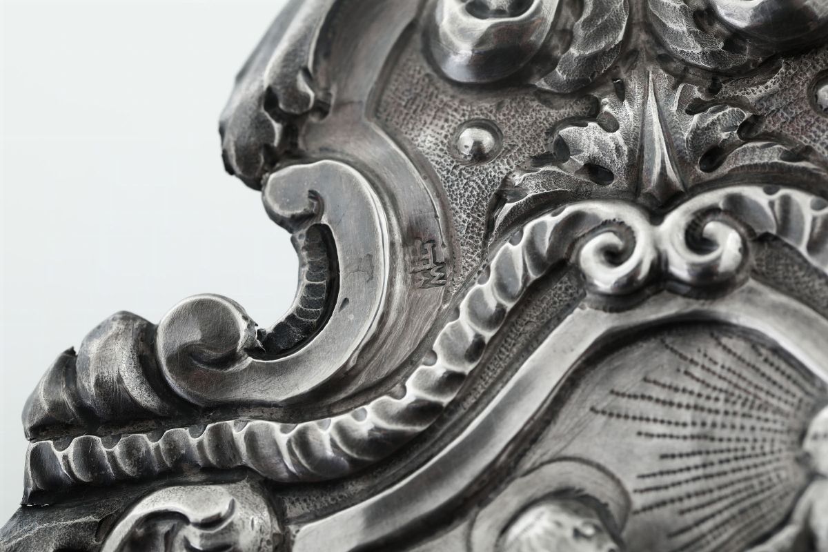 Acquasantiera in argento sbalzato e cesellato Genova, bollo della Torretta per l'anno 1733