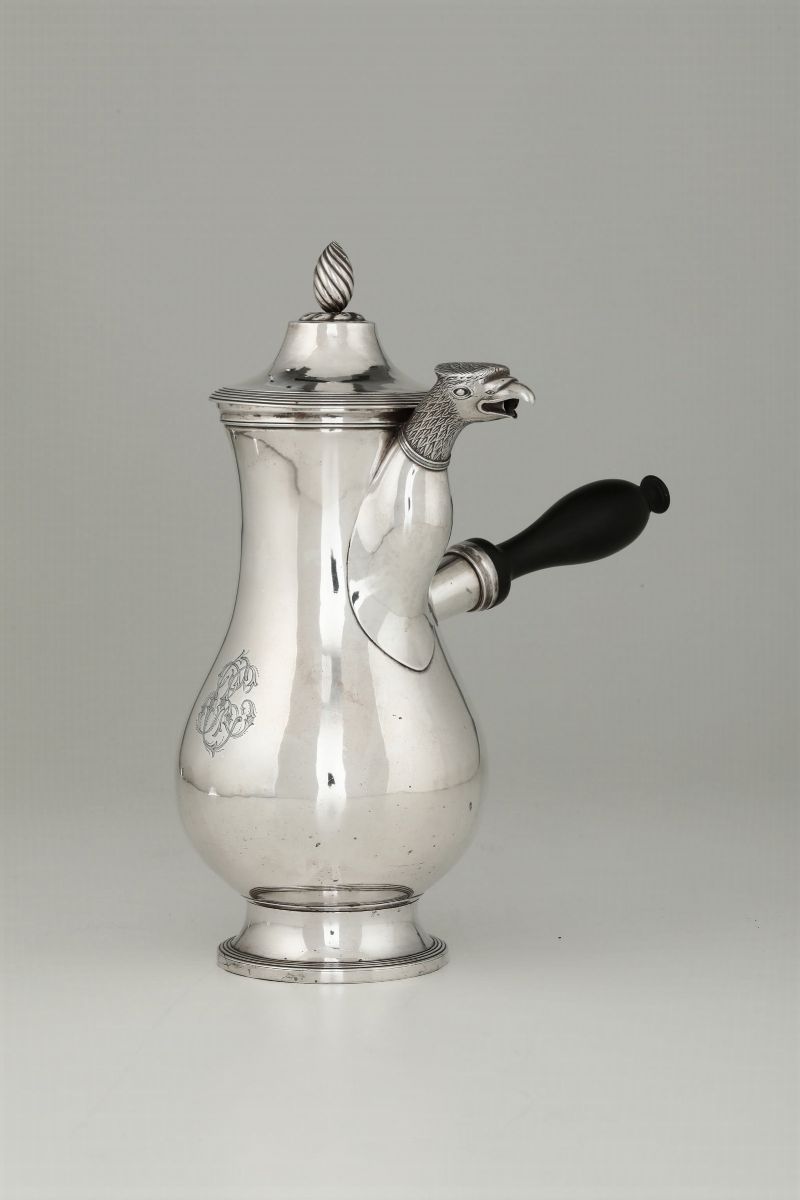 Caffettiera in argento fuso, sbalzato e cesellato Parigi prima metà del XIX secolo, orafo Charles Marie Guidi