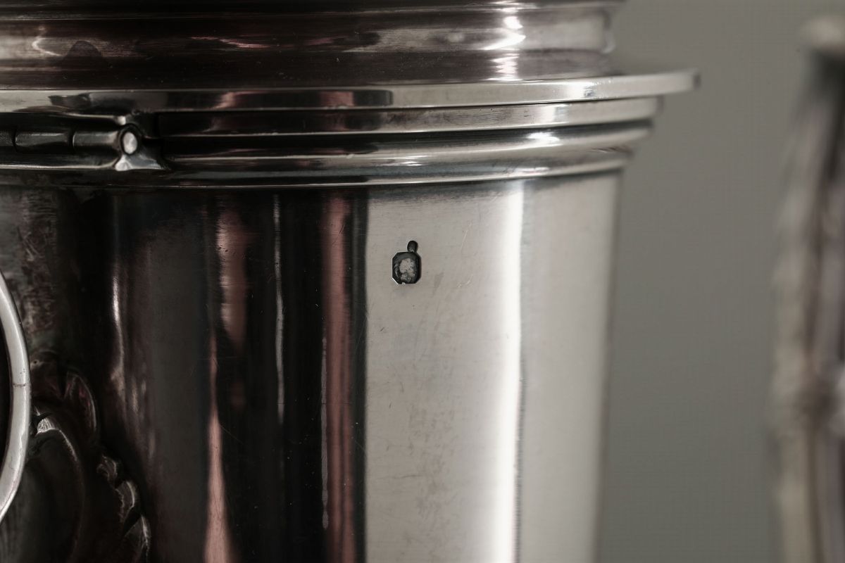 Caffettiera in argento fuso, sbalzato e cesellato Francia XIX-XX secolo