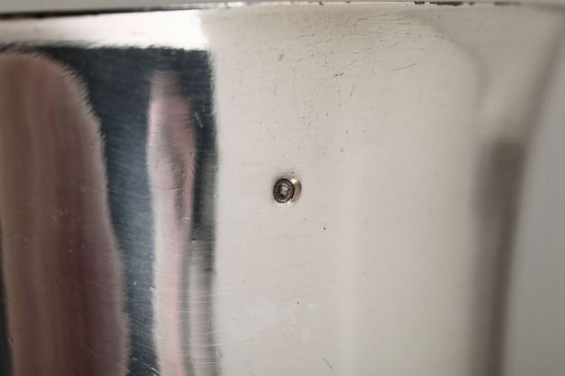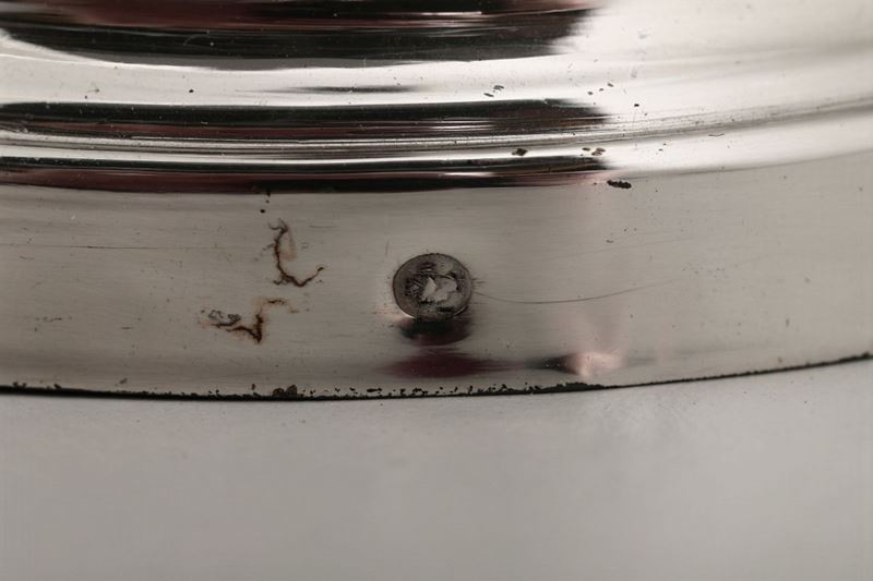 Calice in argento sbalzato e cesellato manifattura italiana dell’ultimo quarto del XIX secolo marchio facoltativo di garanzia del titolo impresso dai bollatori degli uffici di saggio facoltativo del Regno d’Italia (utilizzato dal 1° giugno 1873 al 24 aprile 1935)