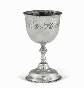 Coppa del Kiddush in argento fuso, sbalzato e cesellato. Arte ebraica, Germania XX secolo