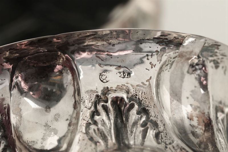Coppia di ciotole in argento sbalzato e cesellato argenteria italiana del XX secolo, bolli ad imitazione dell'argenteria [..]