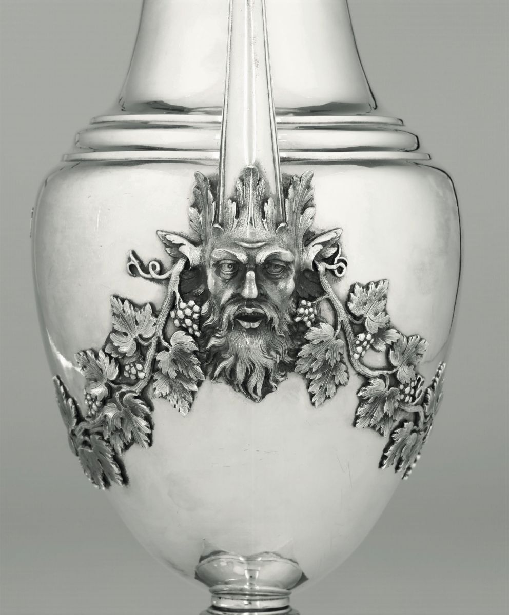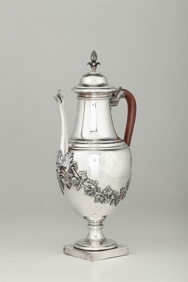 Grande caffettiera in argento fuso, sbalzato e cesellato. Roma, fine del XVIII secolo, bollo dell'argentiere Giuseppe Boroni (1787-1830)