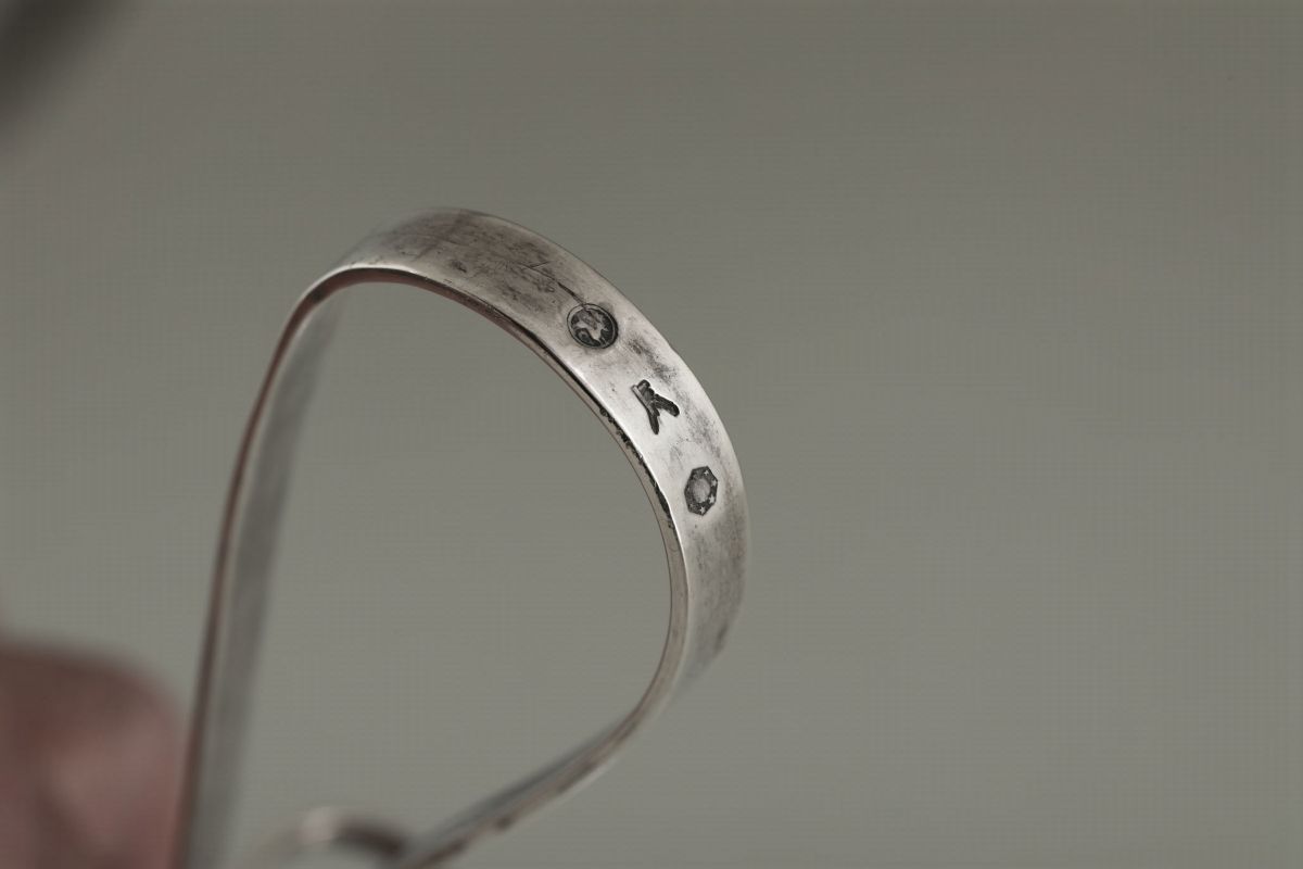 Oliera in argento fuso, sbalzato e cesellato, vetro Milano, metà del XIX secolo, contrassegno per il titolo dell’argento (globo con lo zodiaco e i sette Trioni), bollo dell’Ufficio di Garanzia della città (aratro) e marchio dell’argentiere Emanuele Caber (…1820-1870…)
