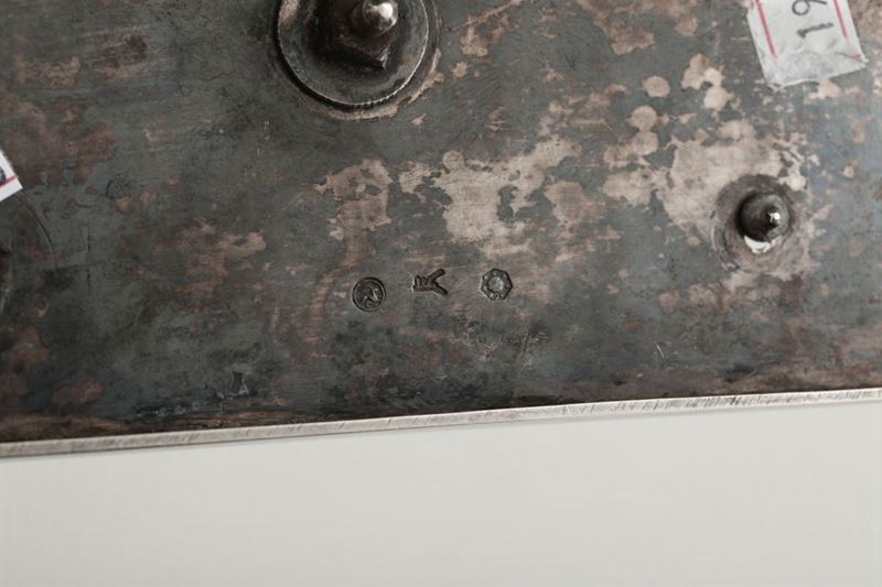 Oliera in argento fuso, sbalzato e cesellato, vetro Milano, metà del XIX secolo, contrassegno per il titolo dell’argento [..]