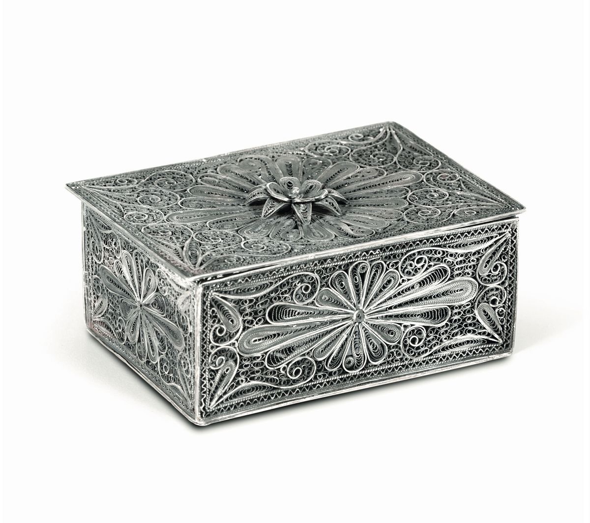 Piccola scatola con fiore sul coperchio arte ebraica del XIX secolo
