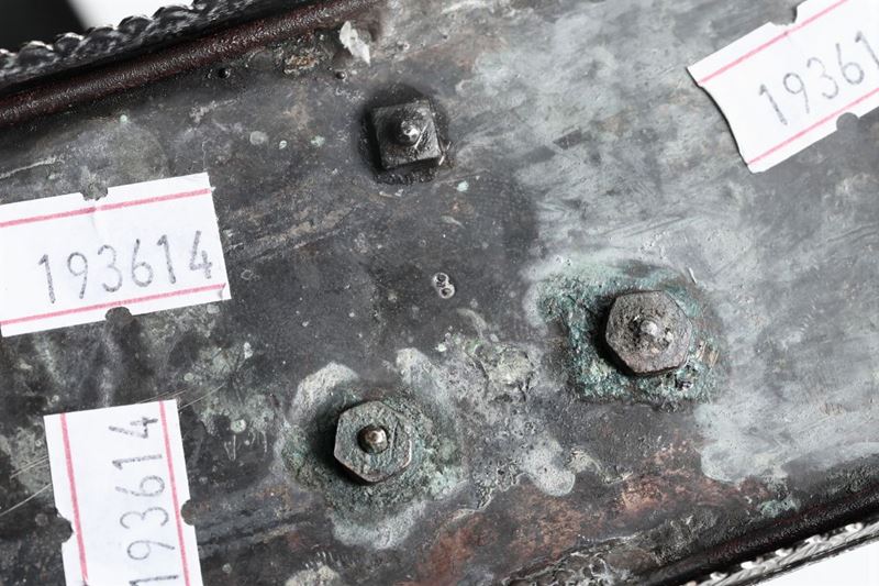 Piccolo calamaio in argento fuso, sbalzato e cesellato manifattura lombarda del XIX secolo, contrassegno per il titolo de [..]