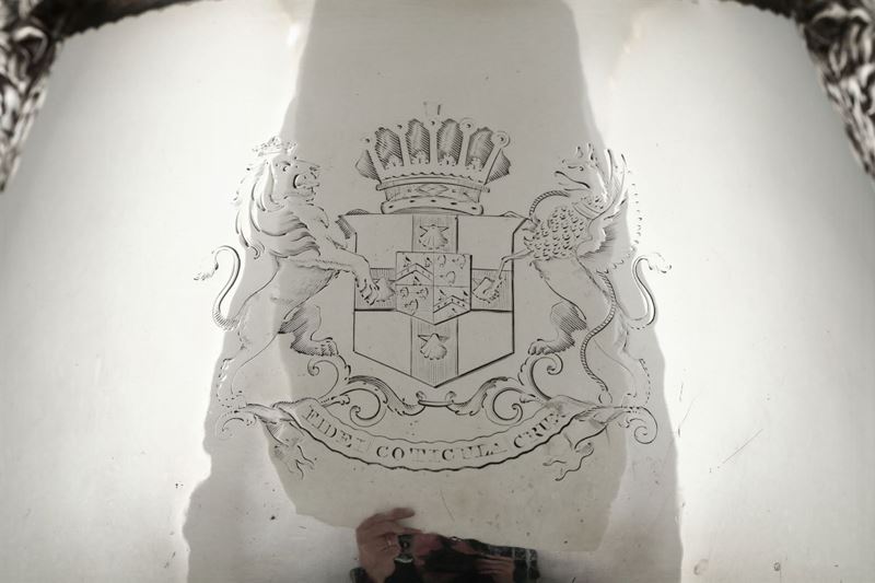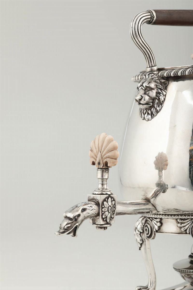 Samovar in argento fuso, sbalzato e cesellato Londra 1808, bollo dell'argentiere P.S. Paul Storr