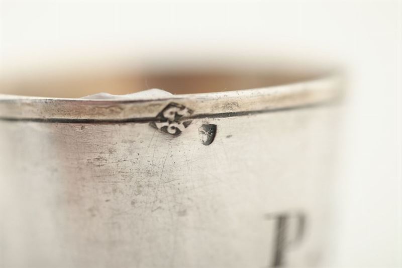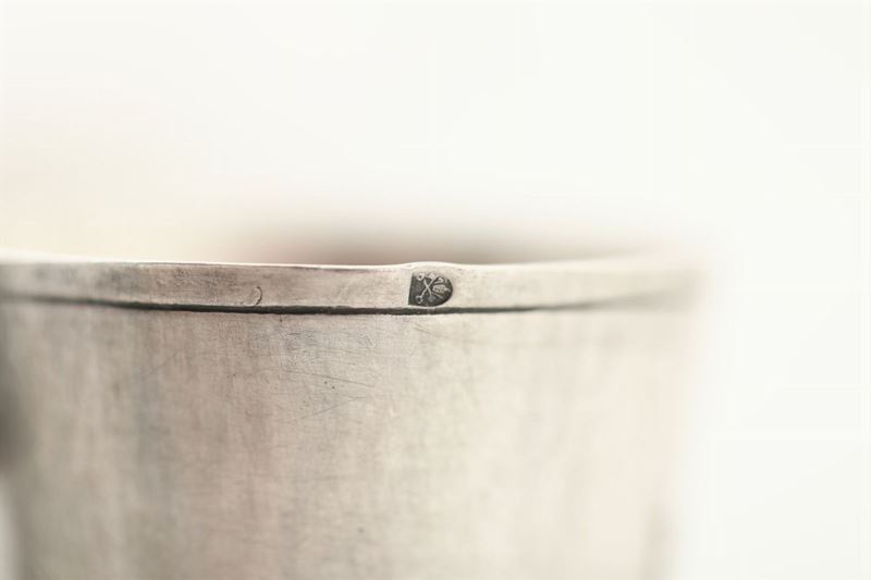 Sei bicchierini in argento fuso, sbalzato, cesellato e in parte dorato Roma, primo quarto del XIX secolo, bollo camerale [..]