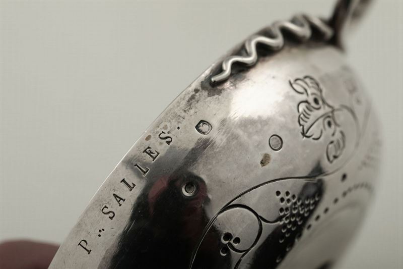 Tastevin in argento fuso, sbalzato e cesellato Francia Aurillach (?) fine XIX secolo