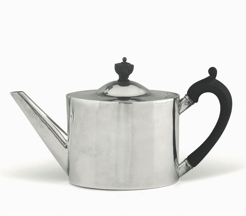Teiera in argento sbalzato, manico e presa in legno ebanizzato Londra 1792, argentieri W. Pitts & J. Preedy