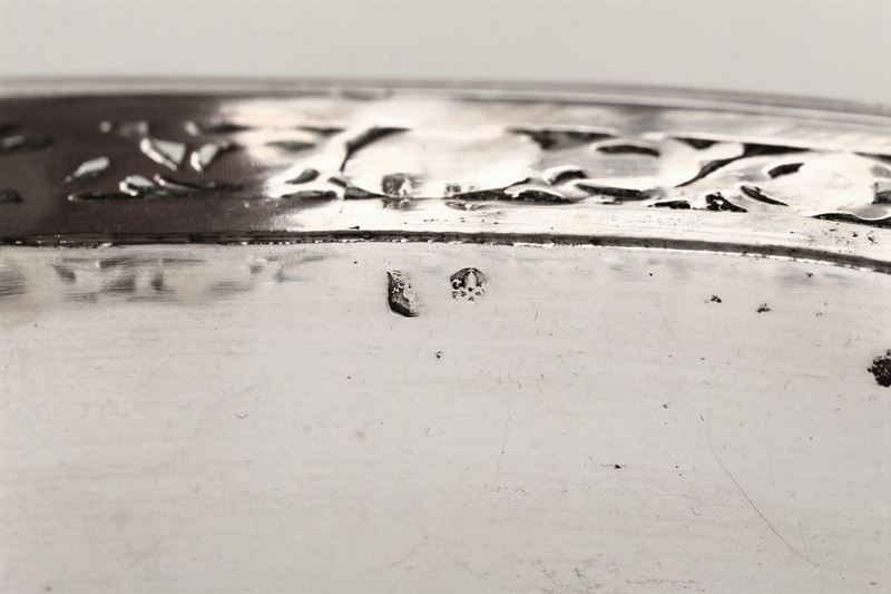Vassoio in argento fuso, cesellato e traforato. Stato Pontificio, fine del XVIII secolo – inizio del XIX secolo. Bollo camerale [..]