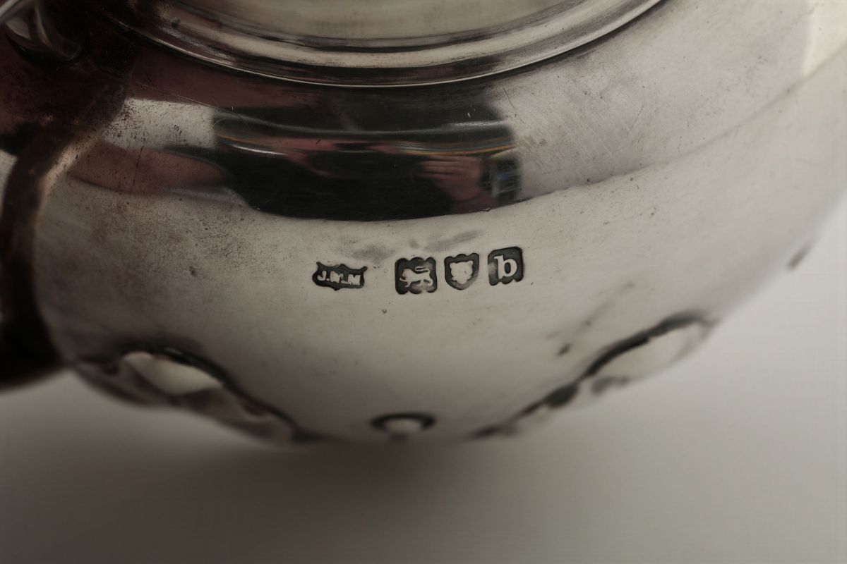 Zuccheriera in argento fuso, sbalzato e cesellato, Londra 1897, argentiere J. W. M. entro scudo (non identificato)