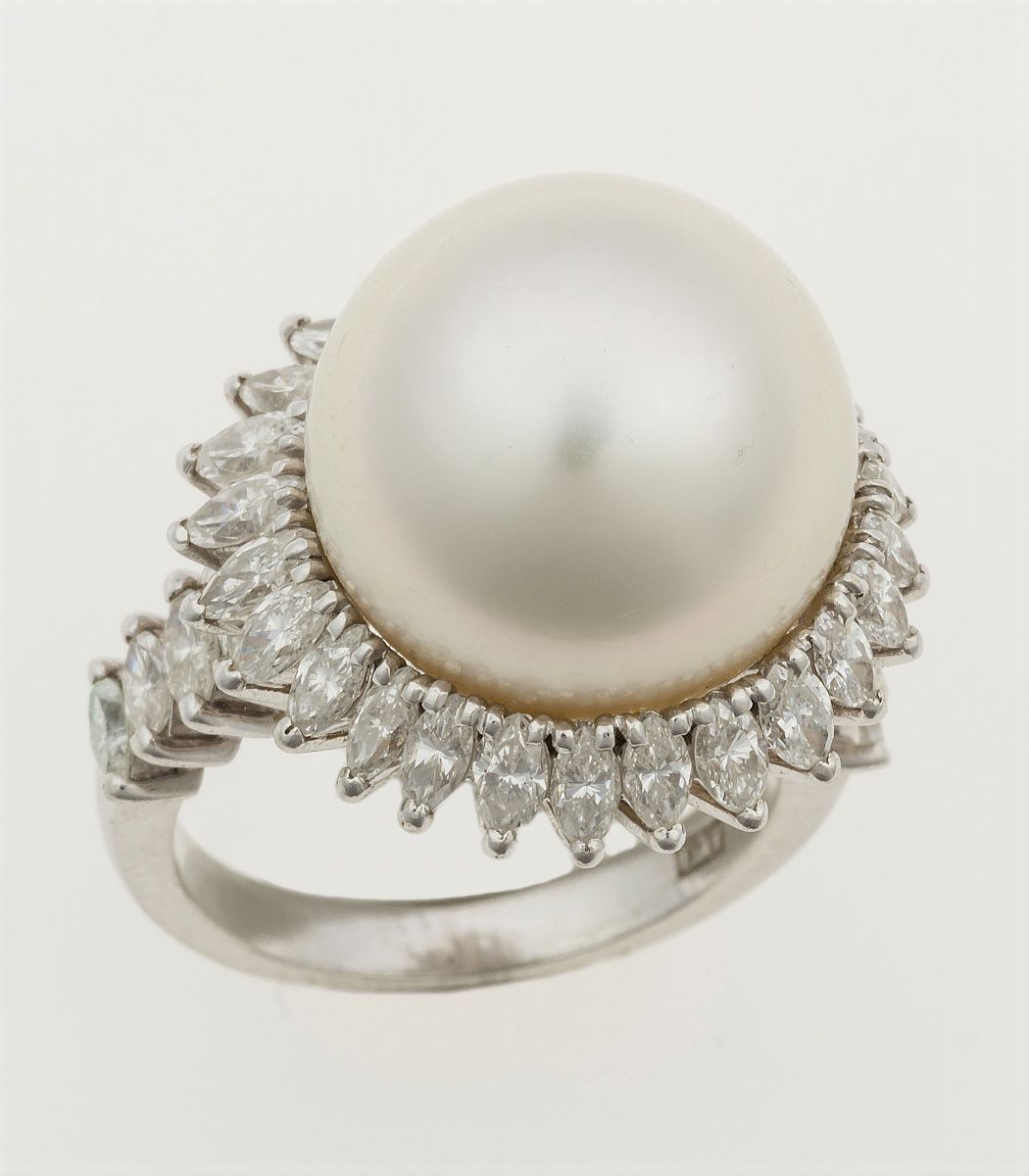 Anello con perla coltivata e diamanti a contorno
