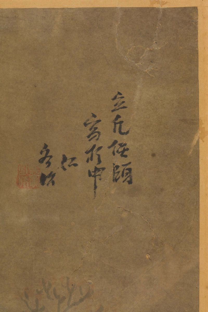 Dipinto su carta con iscrizione e Guanyin entro paesaggio, Cina, inizio XX secolo