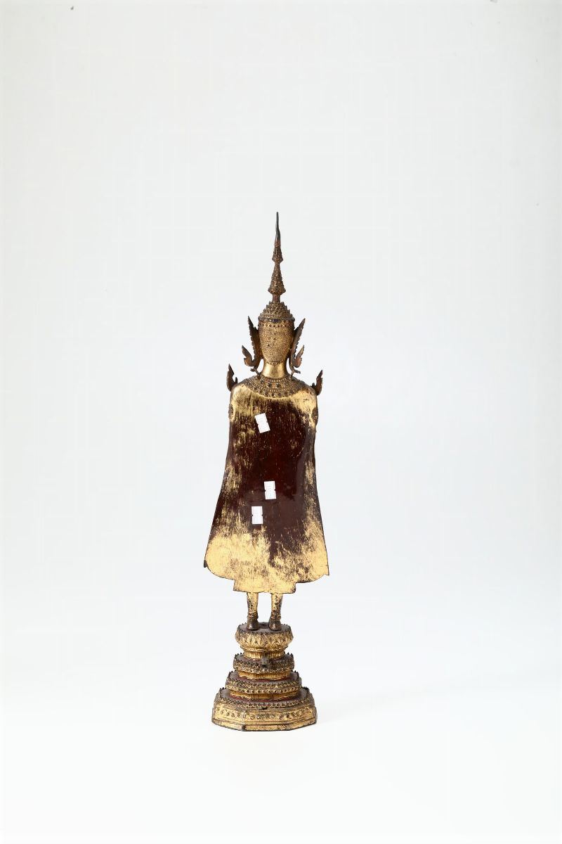 Figura di Buddha eretto in bronzo dorato, Thailandia, XIX secolo