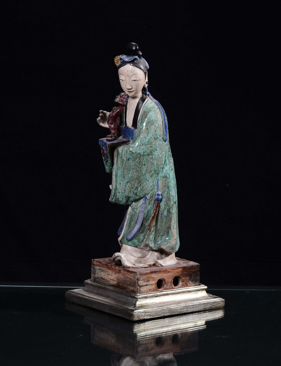 Figura femminile in terracotta policroma, Cina, XX secolo