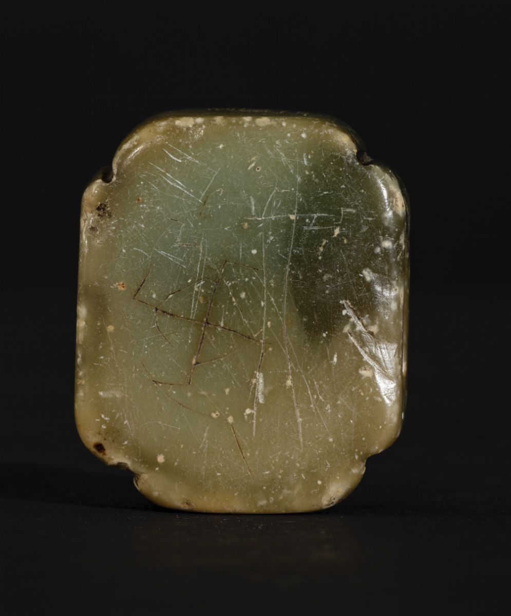 Pendente in giada con decoro di ideogrammi a rilievo, Cina, XX secolo