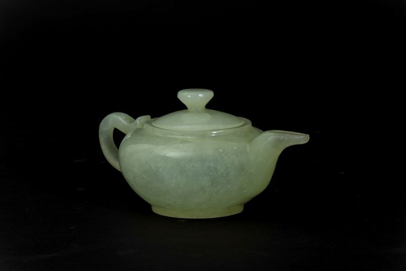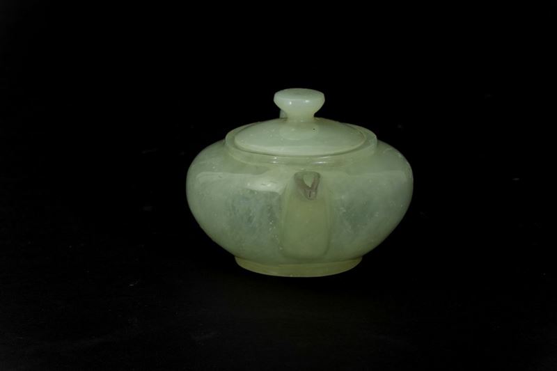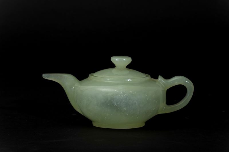 Piccola teiera scolpita in giada verde, Cina, inizi XX secolo