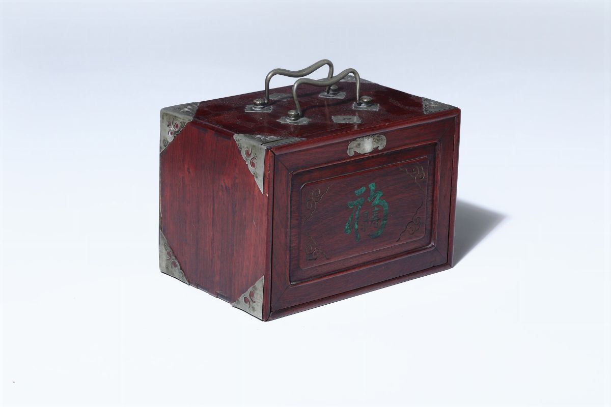 Scatola in legno contenente tessere per Majhong, Cina, inizi XX secolo