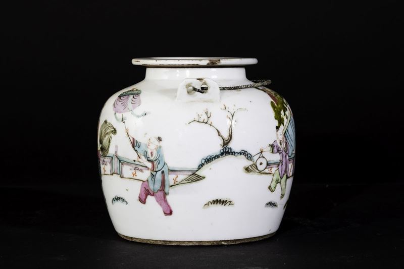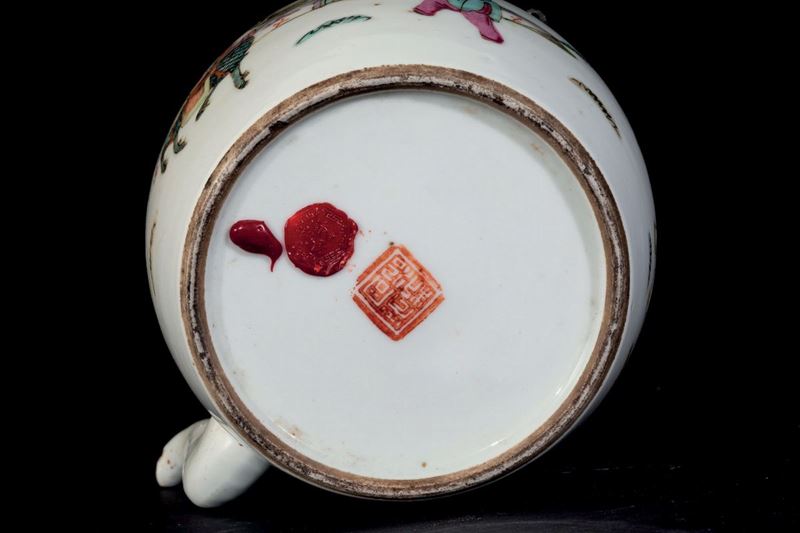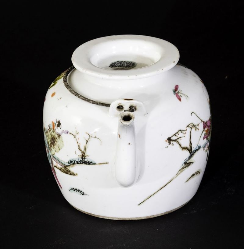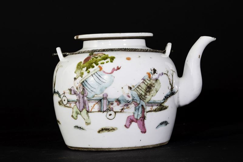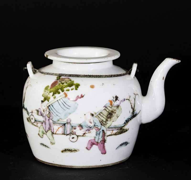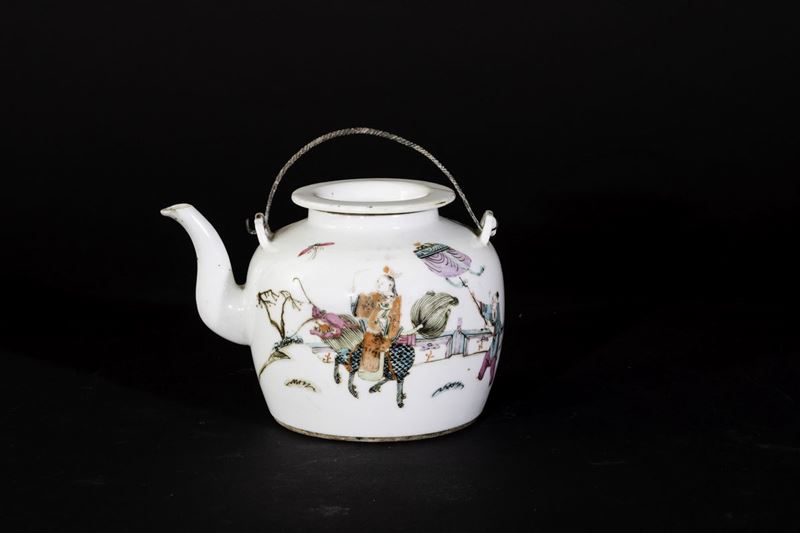 Teiera in porcellana Famiglia Rosa con scena di festeggiamenti, Cina, Dinastia Qing, XIX secolo