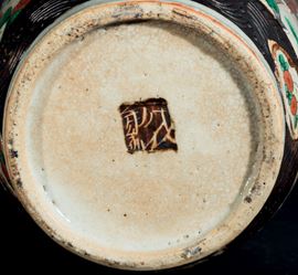 Vaso in porcellana a smalti policromi con figure di guerrieri e decori a foggia di piccoli draghi a rilievo, Cina, Dinastia [..]