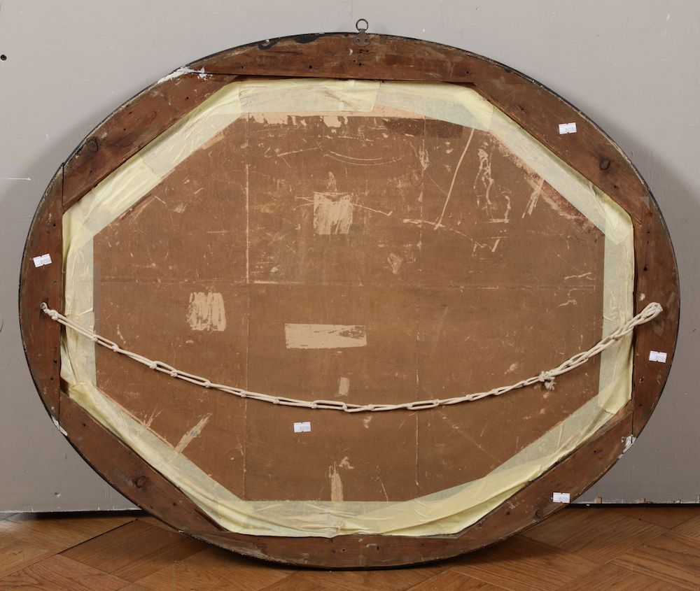 olio su tela applicata su cartone ovale, cm 59x74, firmato in basso a destra e datato 1917