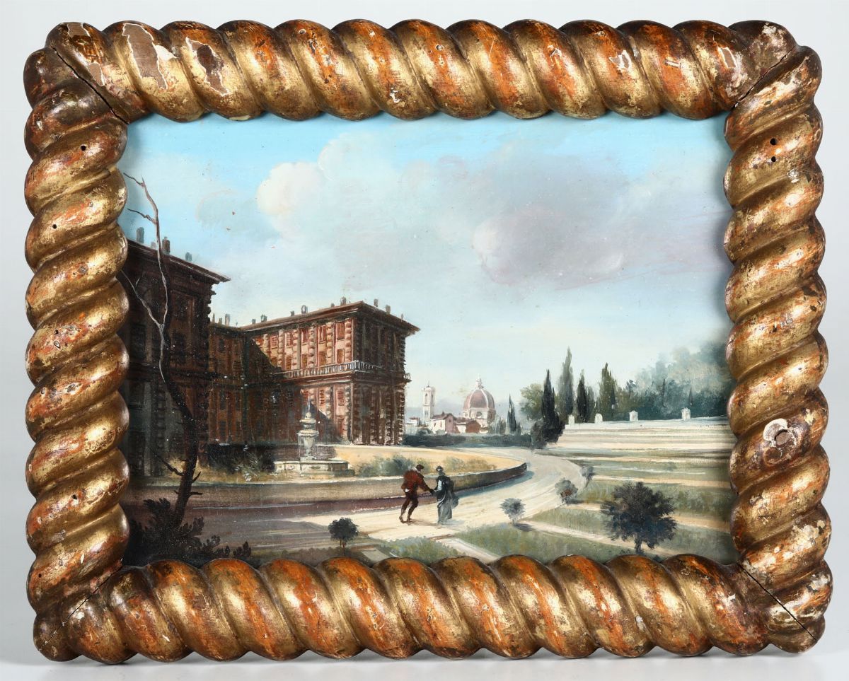 Scuola del XVIII-XIX secolo Piazza della Signoria e il giardino di Boboli a Firenze