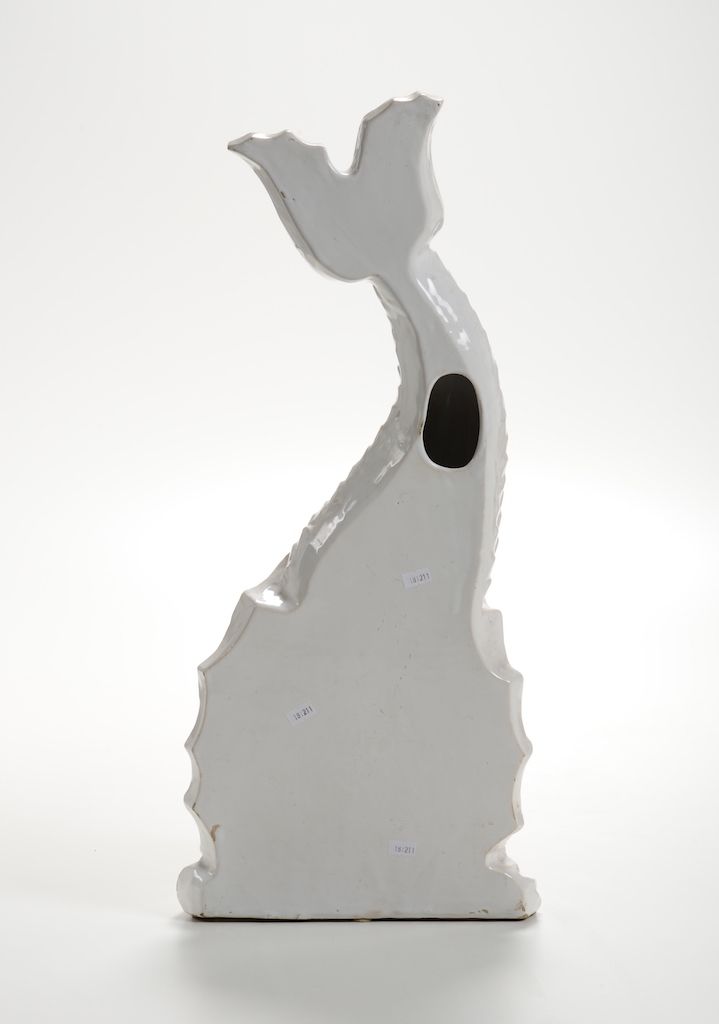 Maiolica bianca. Marca: lettere indecifrabili in rosso porpora. Altezza cm 65. Minime sbeccature