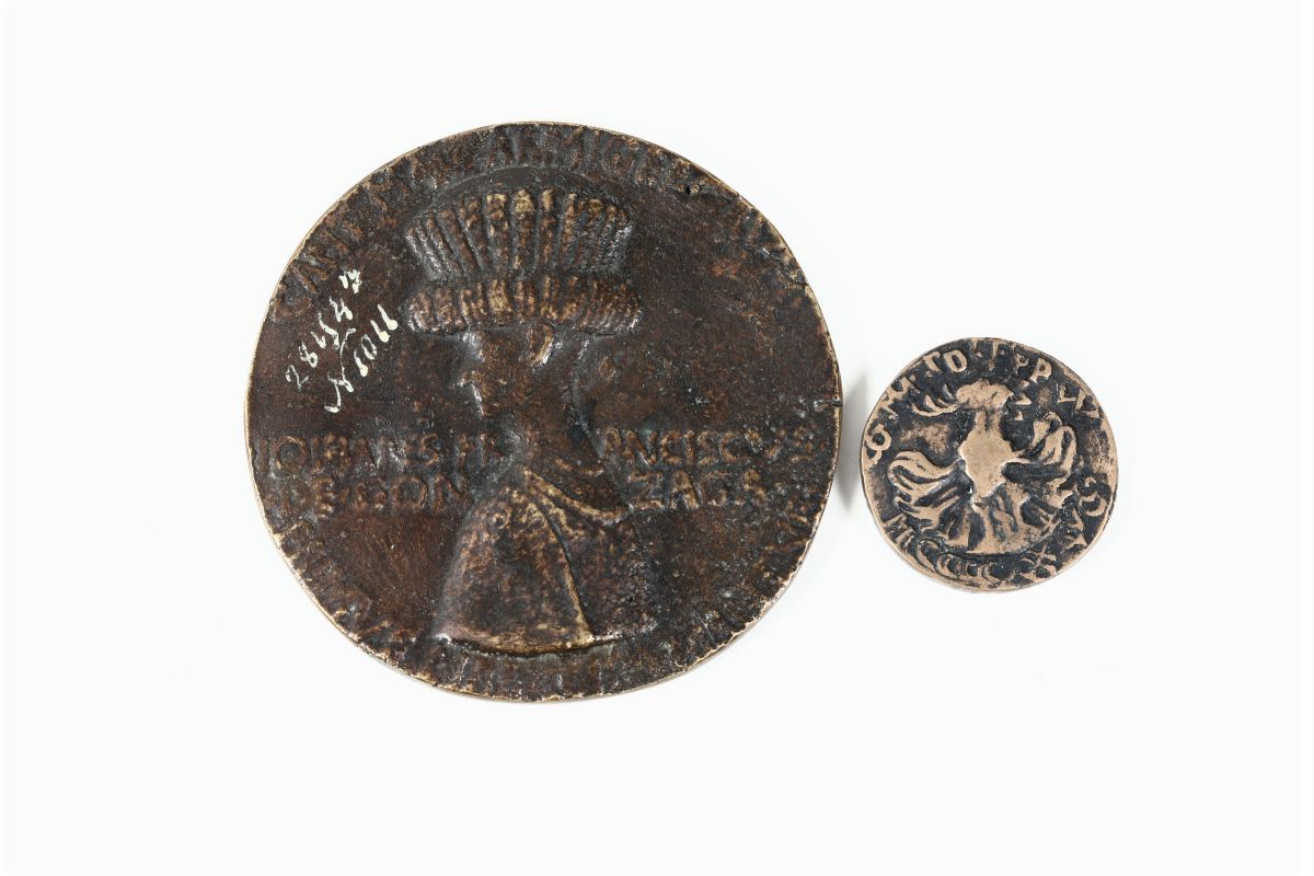 Medaglia commemorativa in bronzo e altra piccola medaglia