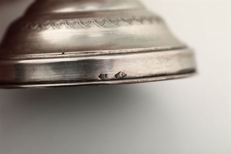 Alzata, zuccheriera, brocchetta e posate spaiate in argento